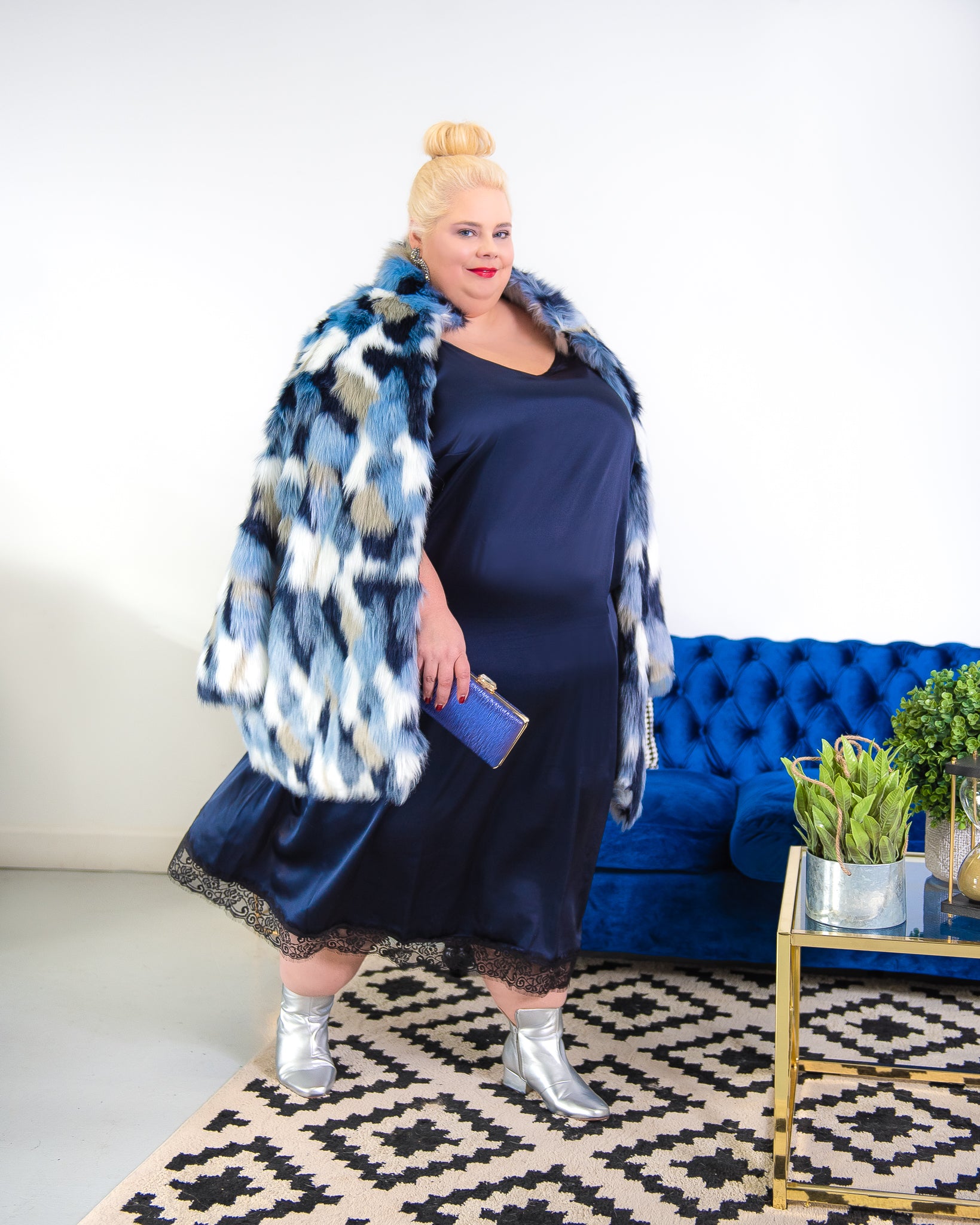 This Ulla Popken faux fur coat features an elegant blue, beige, and navy blue print from the Mustang Sally Two collection. Designed with a secure hook closure and practical pockets, it offers both style and functionality for cooler days. The luxurious texture and distinctive pattern make it a standout piece for your wardrobe. Due to the nature of this exclusive item, all sales are final. FINAL SALE.